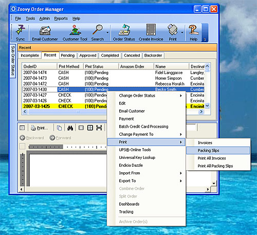 Your selected packing slip shows all of the information you need to complete the order   Simply scan the bar code on the packing slip or enter the order no. when you're ready to print the label. All information is pre-inserted for your UPS label ready to print and automatically charge to your UPS account.